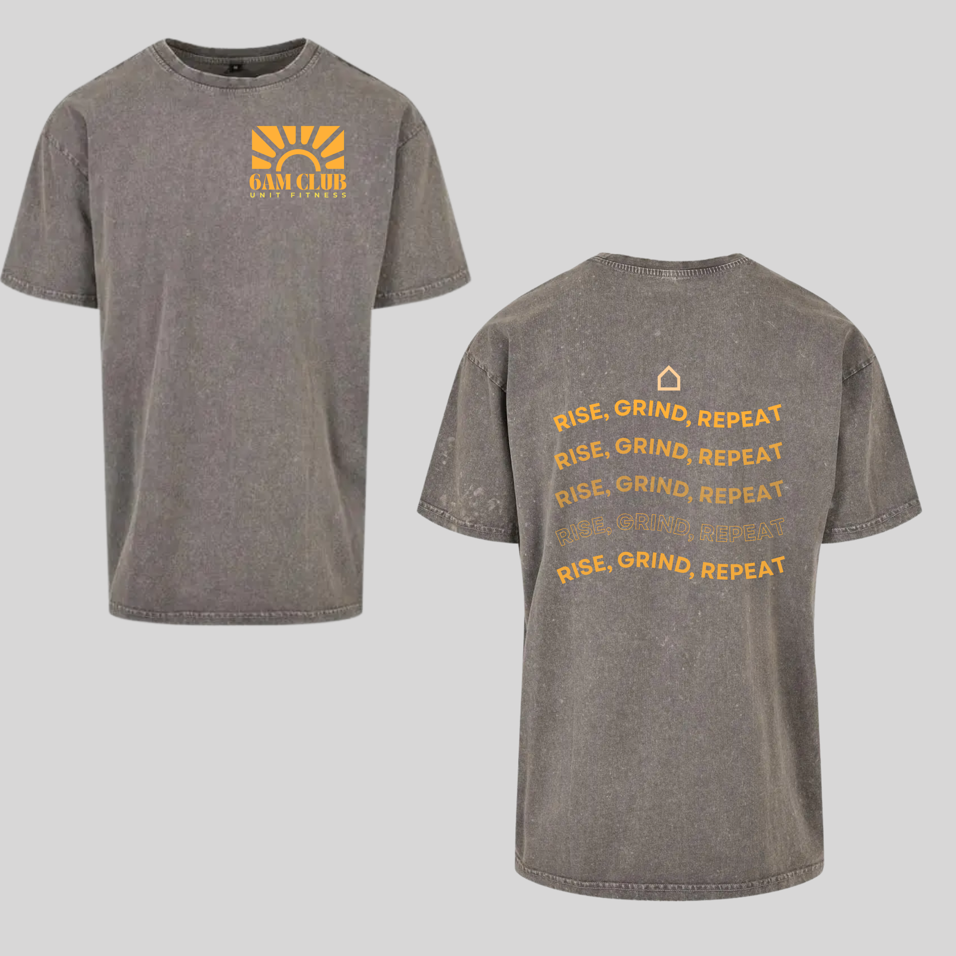 Rise, Grind, Repeat Unit Fitness T-shirt. Designed to motivate you and feel the energy. Standard fit, these tees encourage you to embrace your morning routine with confidence and ease. Perfect for early workouts or casual wear, they help you start the day as you mean to go on.