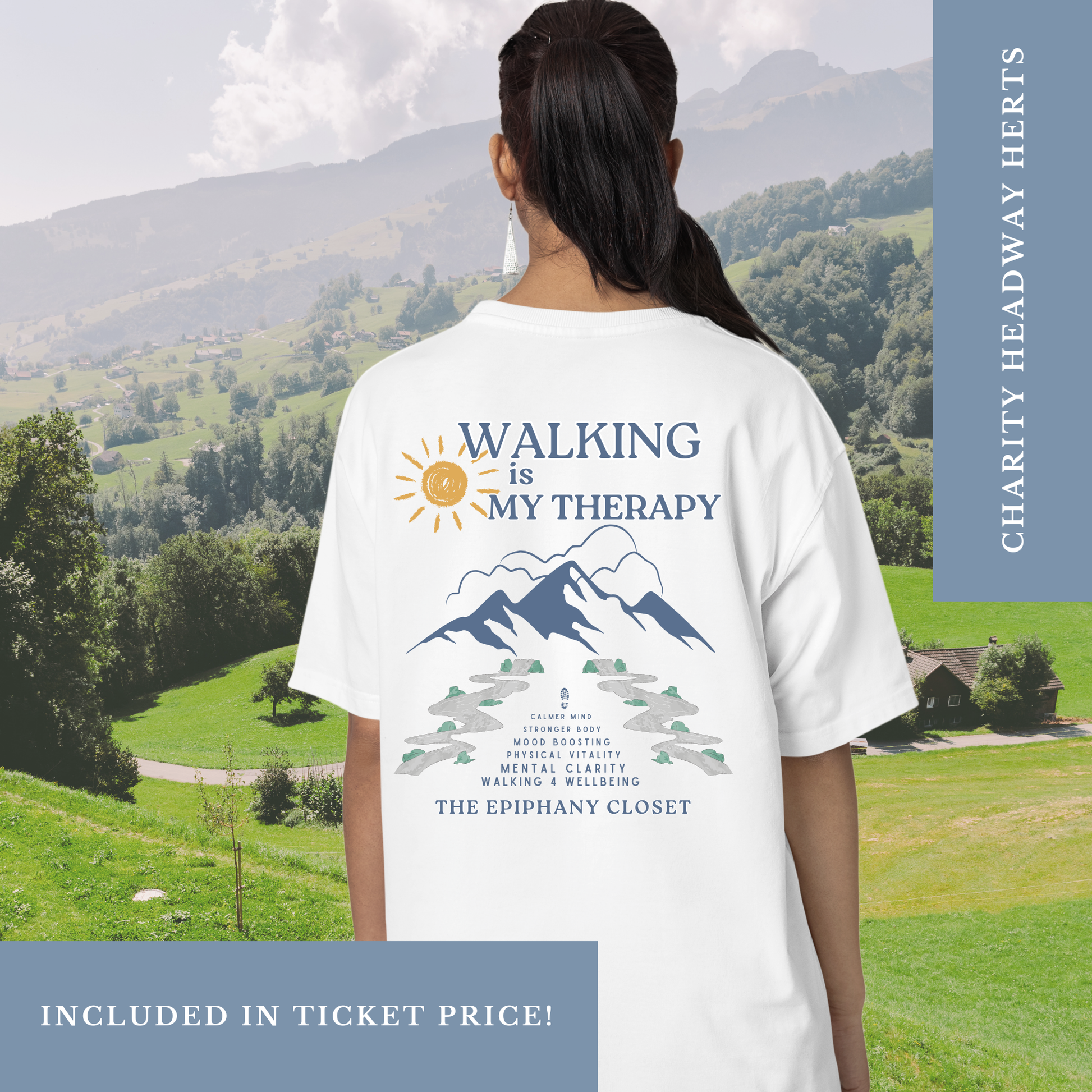 Raising money for Headway Herts brain injury charity. Be inspired by being part of the walking 4 Wellbeing community. Luxury organic cotton tee, not just for an event, but to remind you the importance of using exercise for your health and wellbeing.